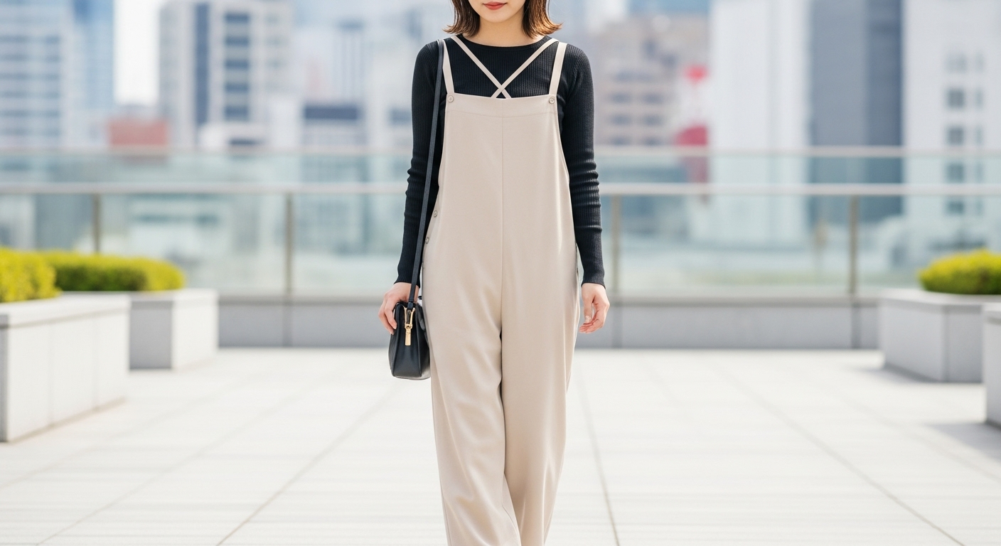 ウエスト位置が高めに設定されたサロペットを選ぶことで、