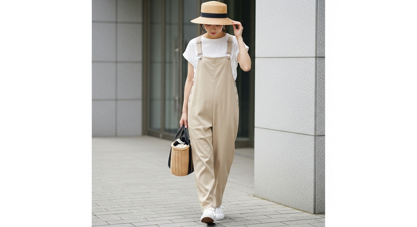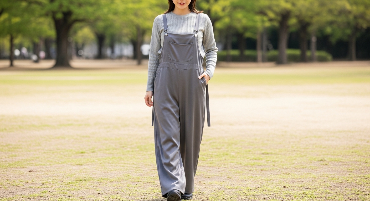 大人っぽいサロペットを選ぶなら、落ち感のある素材を選ぶことが大切です!