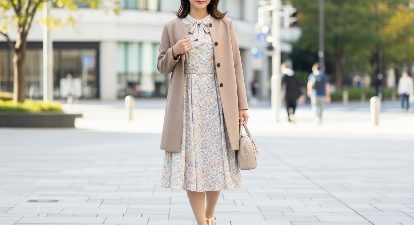 無地との組み合わせで柄ワンピースを大人っぽく着こなす方法