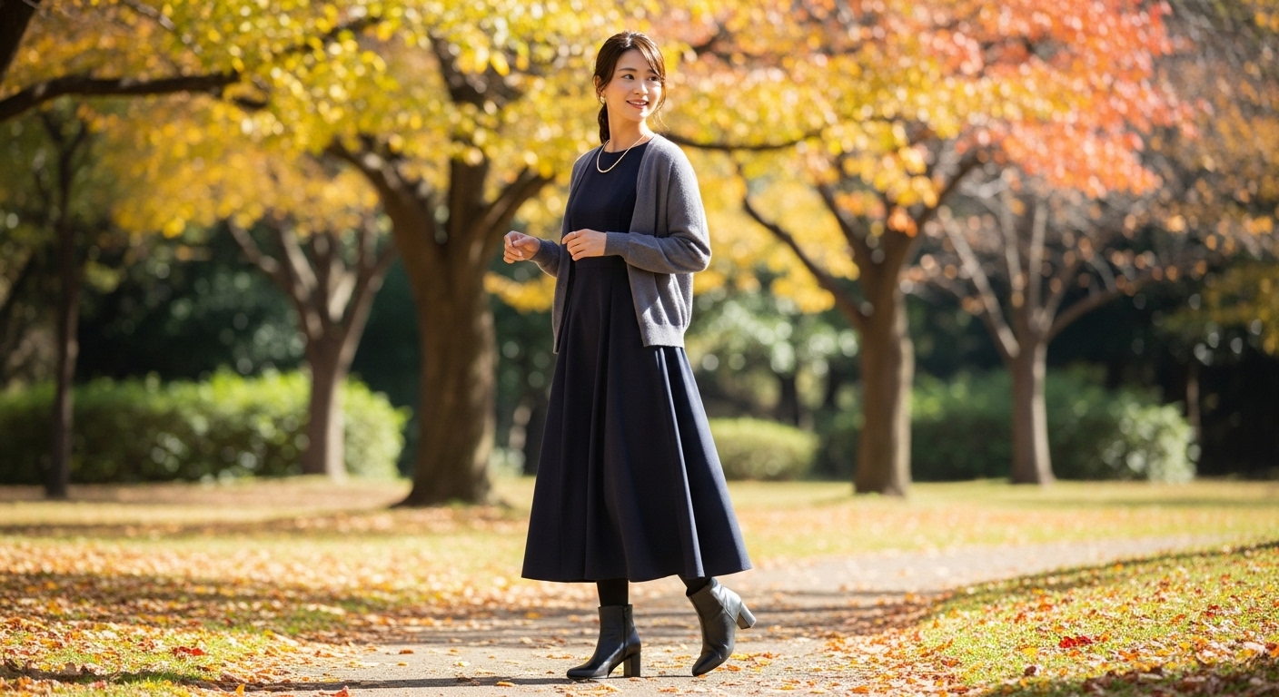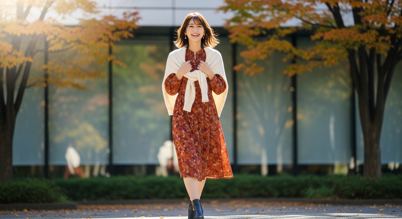 40代・50代の女性には、品格と若々しさを両立させた洗練された秋ワンピーススタイルが求められます。