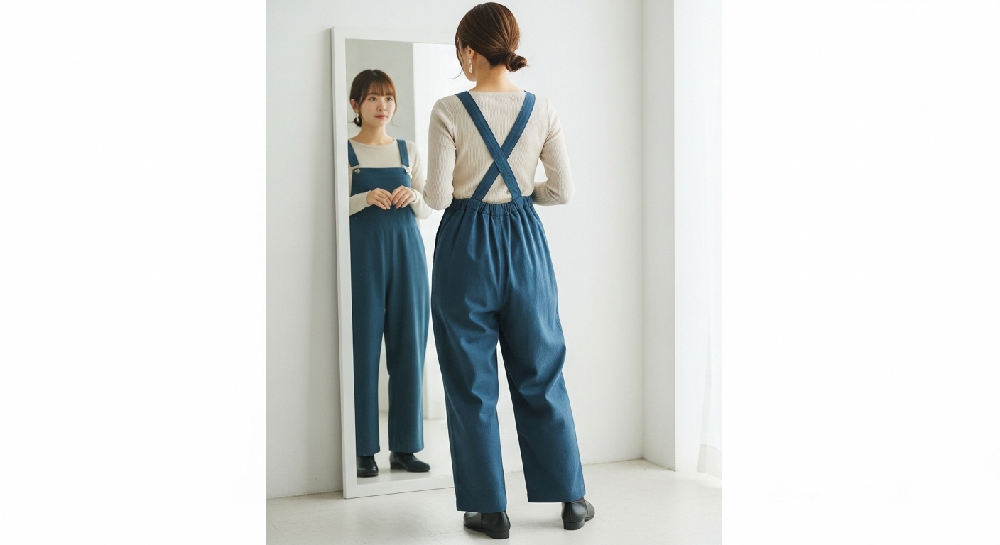 年齢を重ねても、上質な素材と落ち着いた色を選べば、サロペットは長く楽しめます。