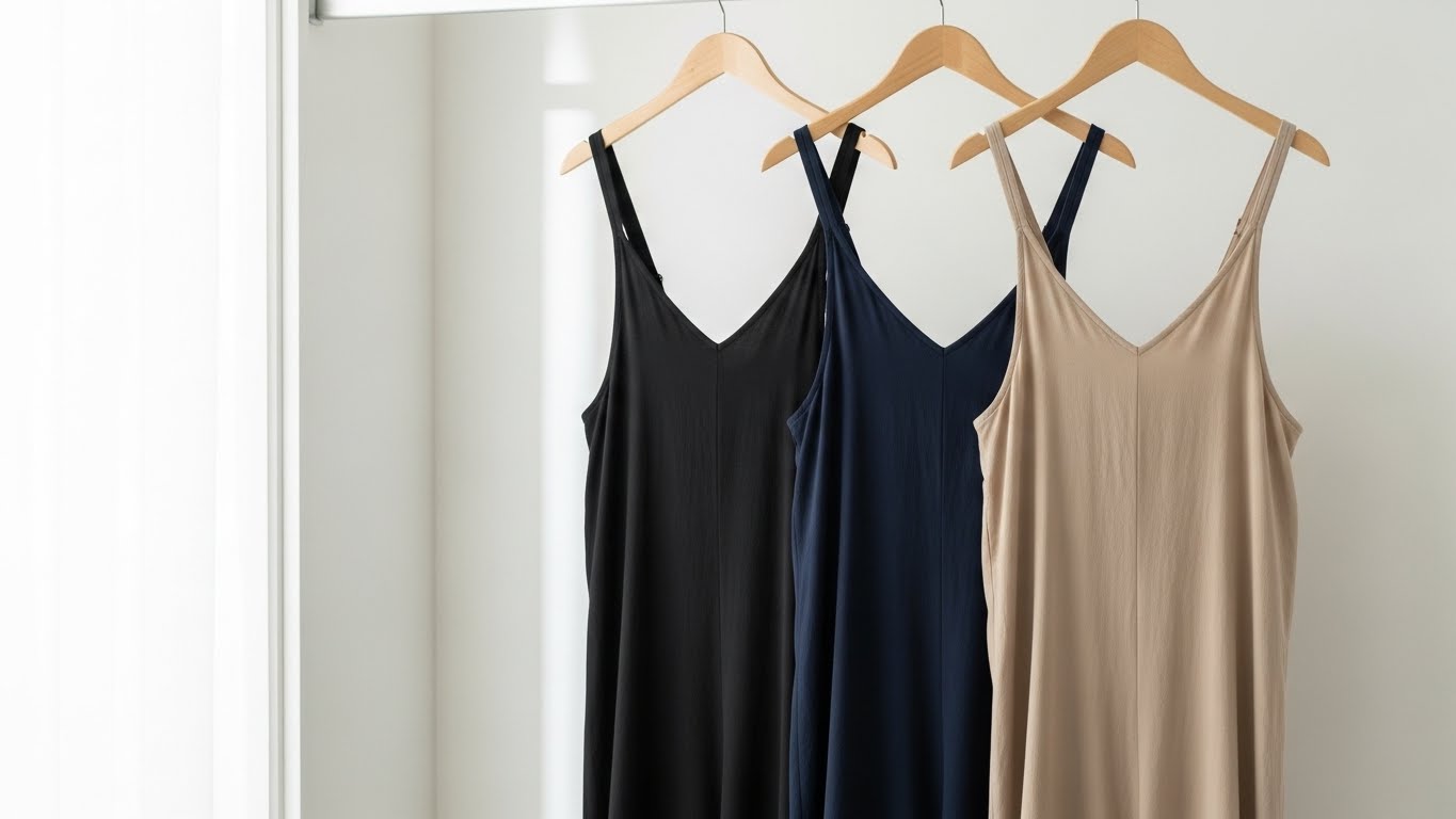 ☑ 肩紐は細め、ネックラインはVネックを選ぶ