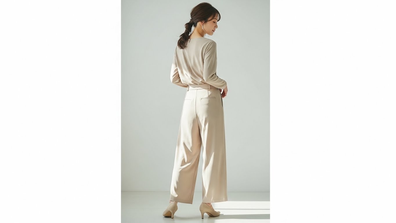 ワンピースのような上品さ × パンツスタイルの動きやすさ。