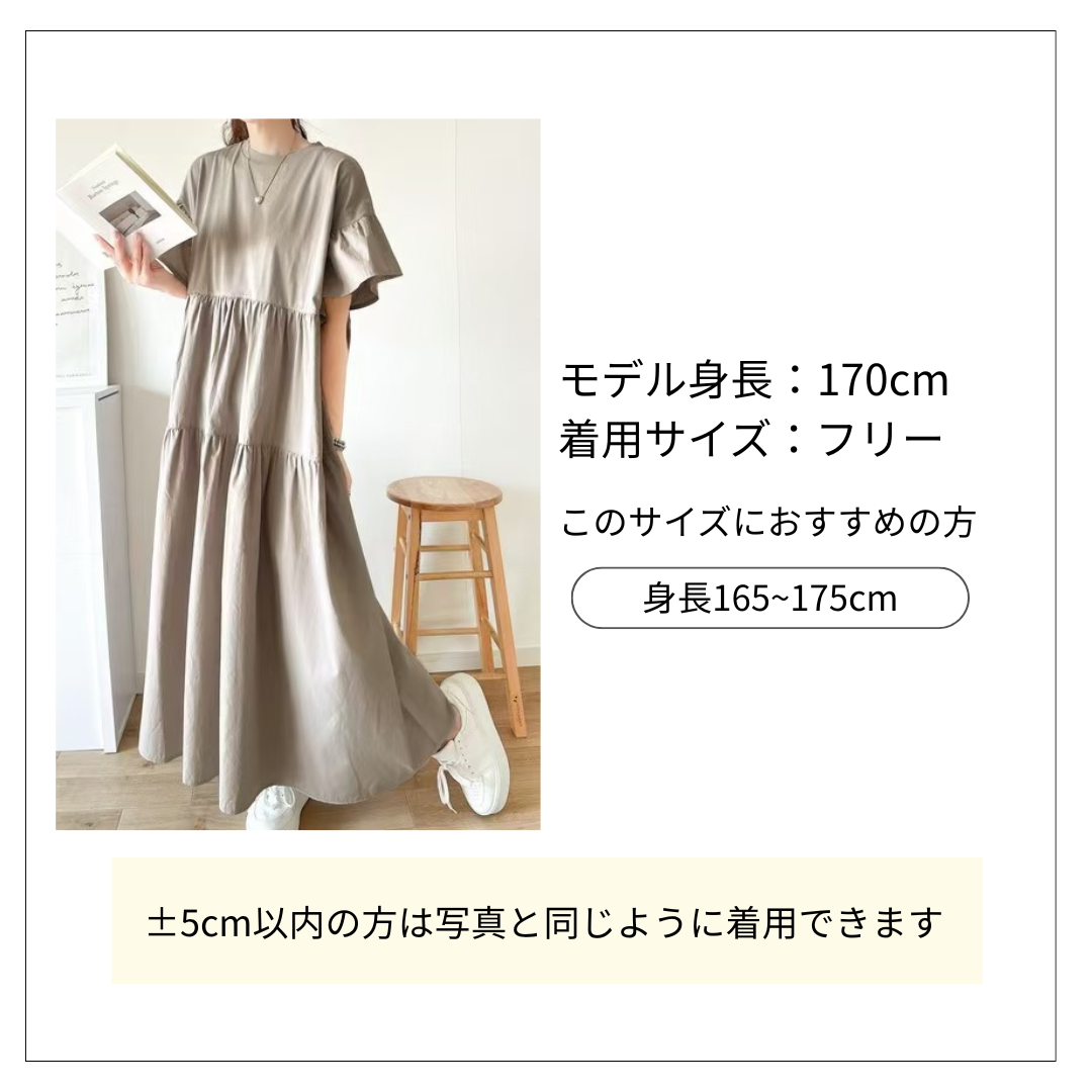 オールインワンコーデ ゆったりティアードマキシワンピース