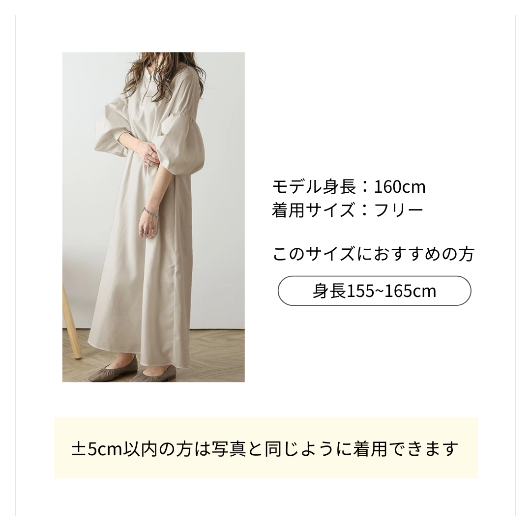 フレアワンピースの魅力を最大限に引き出したデザイン。 ふんわりとした袖のボリュームと胸元のジッパーがアクセントになった上品な一着。 オールインワンコーデにぴったりの落ち着いた雰囲気と軽やかな着心地を兼ね備えています。
