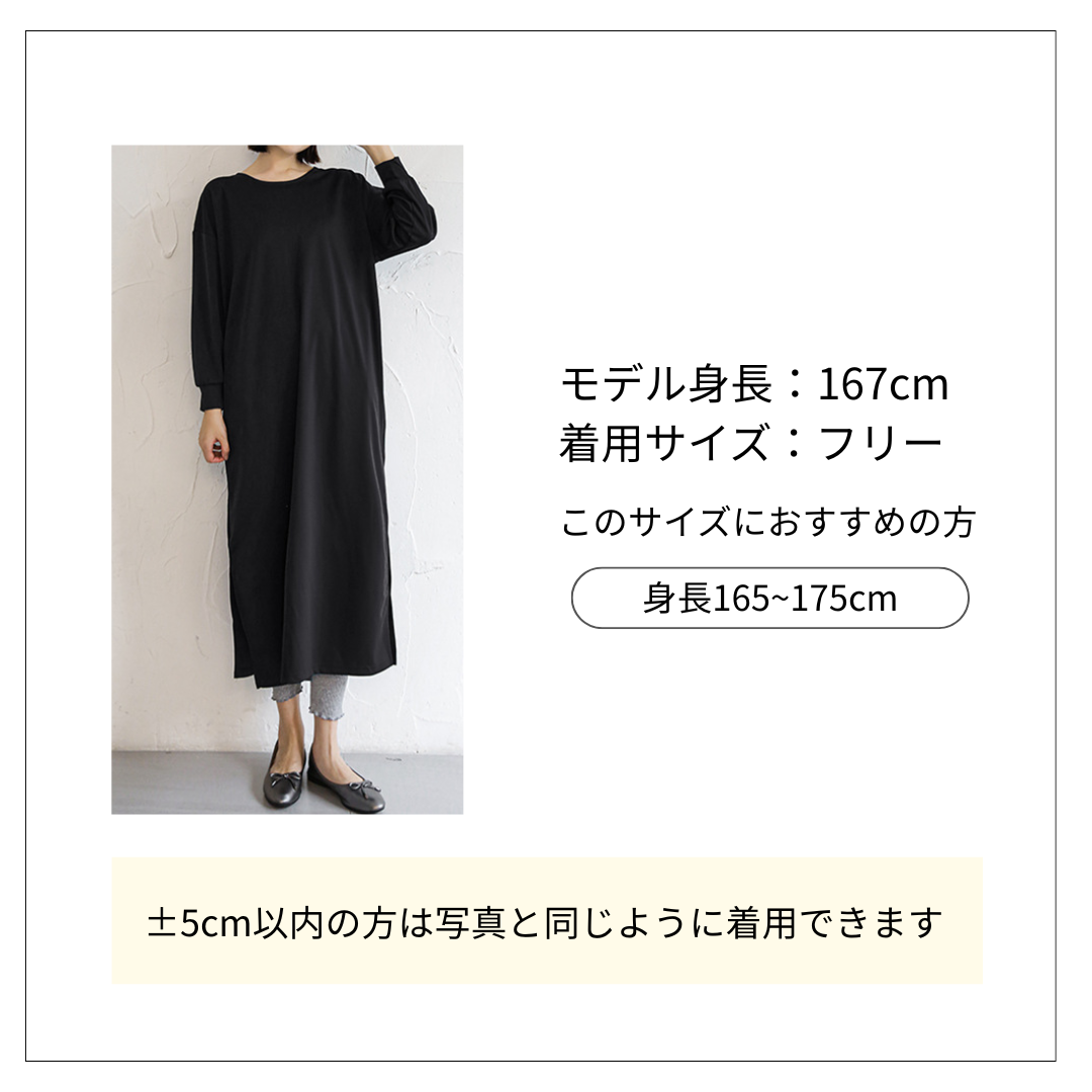 落ち感のある柔らかな素材を使用したカットソーワンピースです。 深めのサイドスリットがこなれ感を演出し、レギンスやパンツとのオールインワンコーデが楽しめます。 リブの袖口がアクセントになり、ゆったりとした着心地で体型カバーも叶える一枚です。