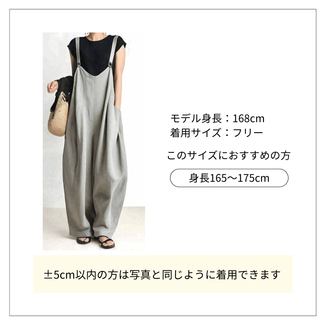 太めの肩紐とたっぷりとした身幅が特徴的なパンツサロペットです。 裾に向かって広がるワイドシルエットで、オールインワンコーデとして一枚でこなれた着こなしが完成します。 肩紐は調節可能で体型に合わせてお好みの丈感に調整できます。