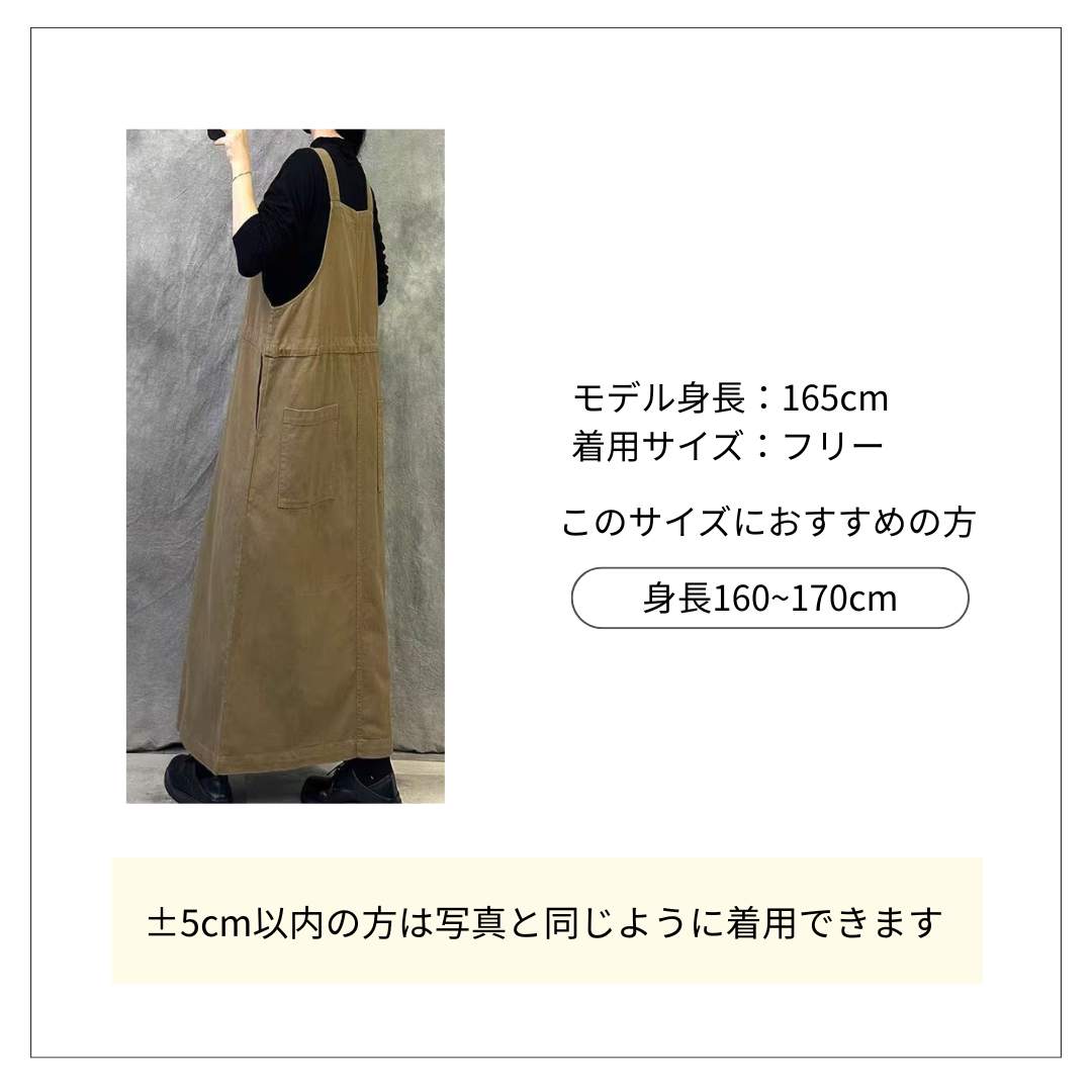すっきりとしたシルエットが魅力のオーバーオールスカートです。 胸元のポケットとウエストの調節紐がアクセントになり、機能性も抜群。 オールインワンコーデとして一枚で様になる、デイリーに活躍する万能アイテムです。