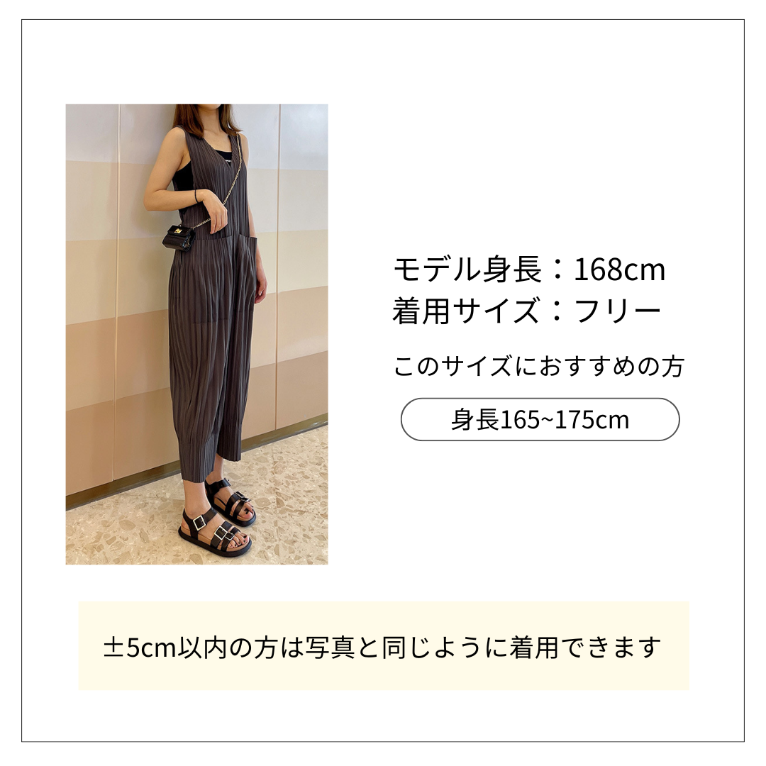 立体的なプリーツ加工が美しいオールインワン(コンビネゾン)。 ゆったりとしたシルエットで体型カバーも叶い、一枚でこなれた雰囲気が完成します。 下にタートルやニットを合わせれば、季節を問わず楽しめるオールインワンコーデが実現できる優秀アイテムです。
