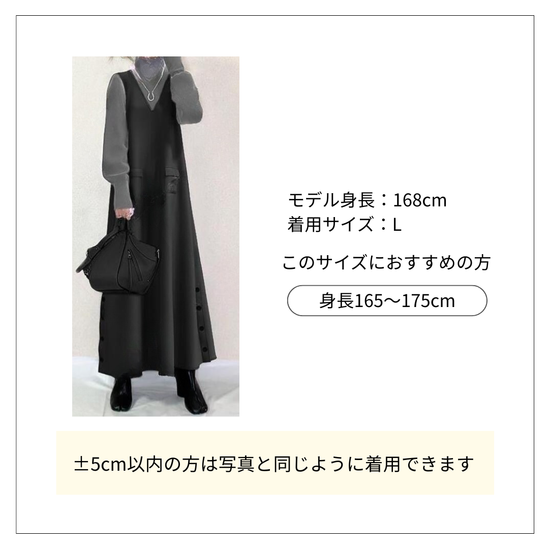 黒のタートルネックとのレイヤードスタイルが今っぽいオールインワン(コンビネゾン)です。 サイドの前ボタンがアクセントになり、ゆったりとしたシルエットで体型カバーも叶います。 大人の落ち着いた雰囲気を演出できるオールインワンコーデが完成します。