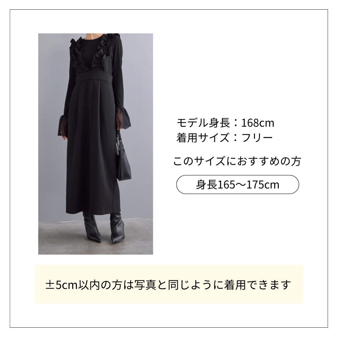 胸元の立体的なフリルと背中の大胆な開きが魅力的なオールインワンコーデの主役アイテム。 袖口のシアー素材や総柄がエレガントなアクセントに。 ハイウエスト切替で美しいシルエットを実現したオールインワン(コンビネゾン)です。