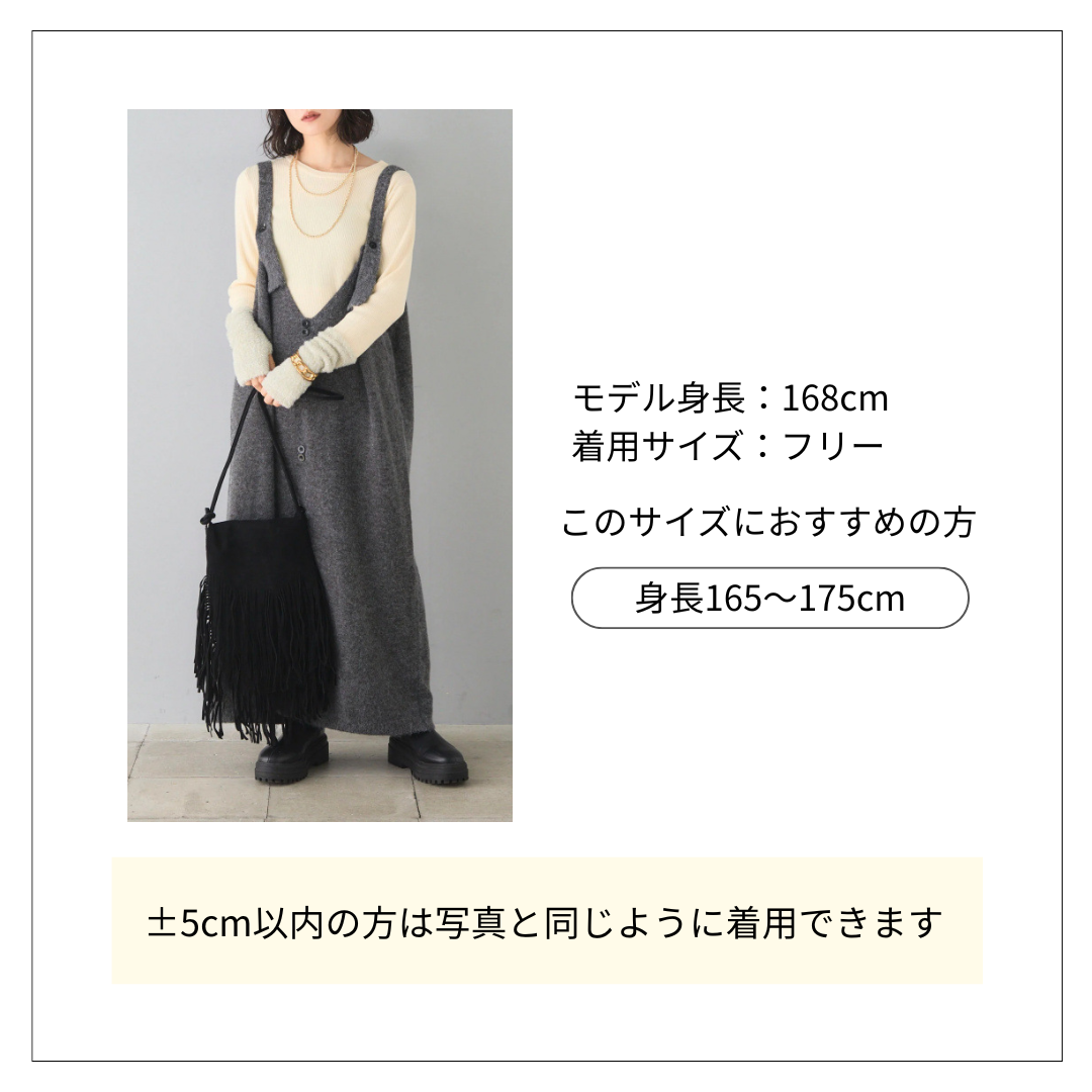 深めのVネックが女性らしい抜け感を演出するジャンパースカートです。 ニット素材で柔らかな着心地を実現し、インナー次第で様々な表情を楽しめるオールインワン(コンビネゾン)。 一枚で決まるオールインワンコーデで、こなれた大人カジュアルスタイルが完成します。