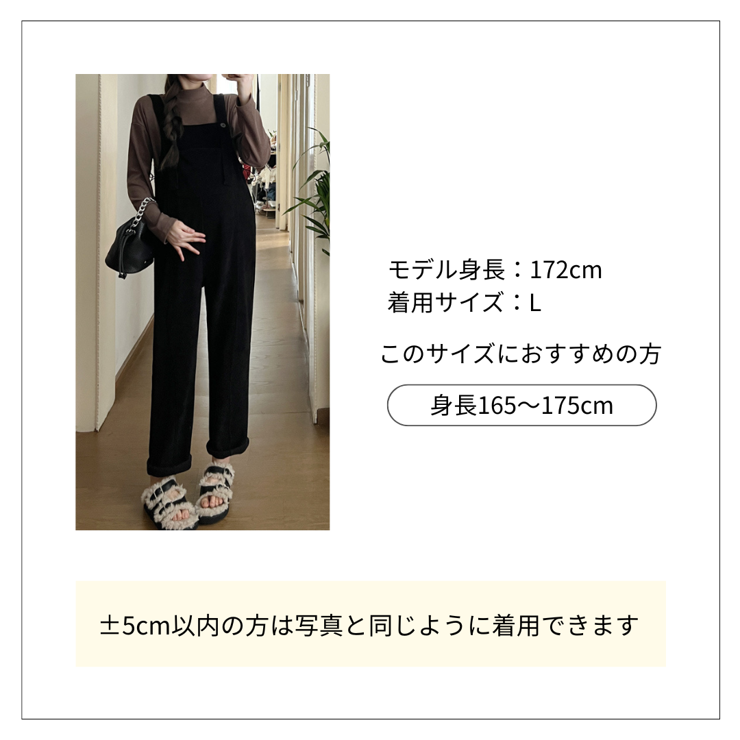 すっきりとしたワイドシルエットのサロペットタイプのオールインワン(コンビネゾン)です。 肩紐は調節可能で体型に合わせてフィット感を調整できます。 ゆったりとしたシルエットが体型カバーにも最適で、オールインワンコーデを楽しめる万能アイテムです。
