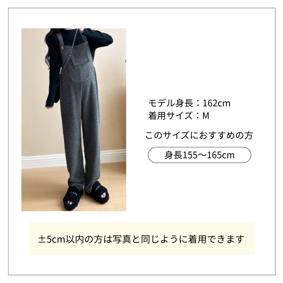 黒のトップスと合わせて着こなす、こなれ感抜群のオールインワンコーデ。 斜めに入ったストライプ柄が目を引くサロペットタイプのオールインワン(コンビネゾン)は、カジュアルながらも大人っぽい雰囲気を演出します。 ゆったりとしたシルエットで着心地も抜群です。