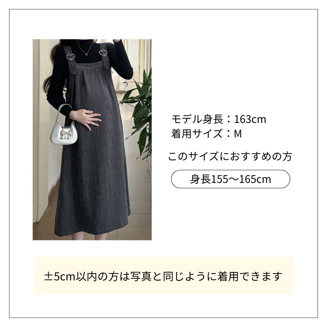 胸元のハート刺繍がキュートなタートルネックトップスと、ゆったりとしたジャンパースカートの二点セット。 オールインワンコーデのスカートタイプで、レイヤードスタイルが簡単に完成します。 落ち着いた配色で大人可愛く着こなせる、デイリーユースにぴったりのアイテムです。