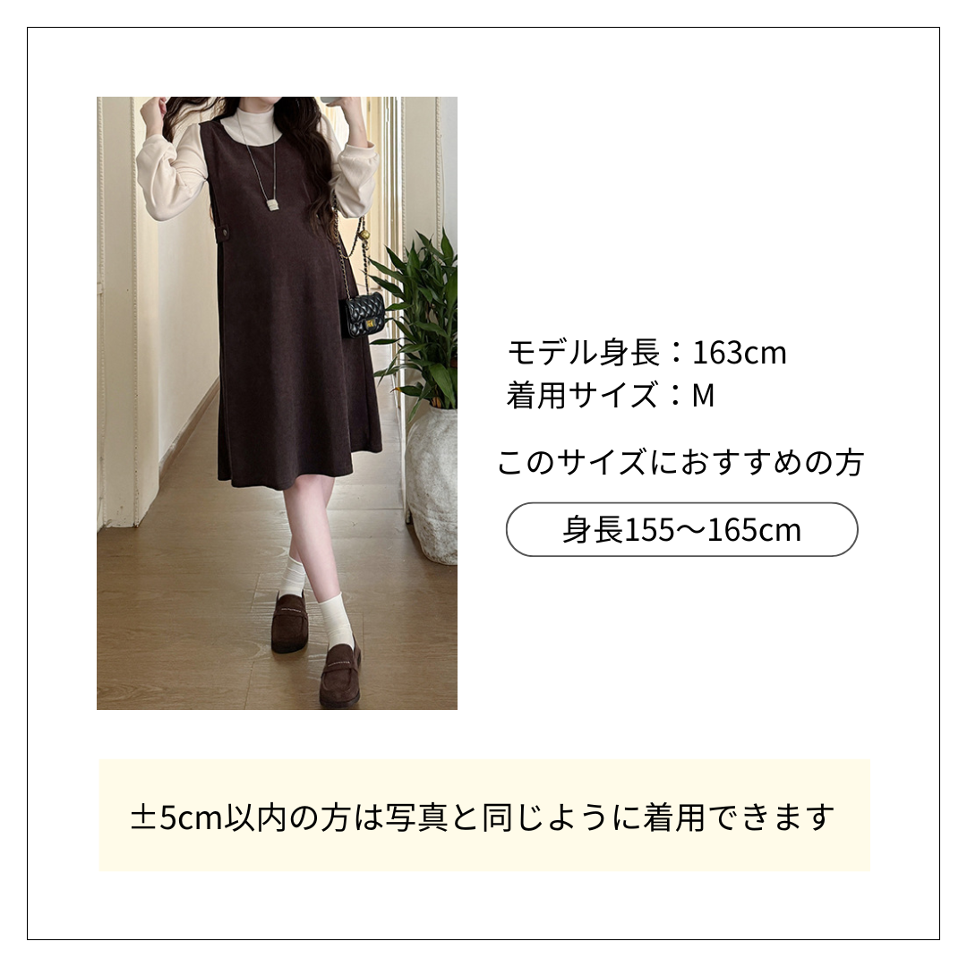 長袖タートルニットとジャンパースカートの組み合わせが魅力的なオールインワンコーデのスカートタイプです。 動きやすさと上品さを両立した、デイリーからお出かけまで幅広く活躍する一着。 ゆったりとしたシルエットで体型カバーも叶います。