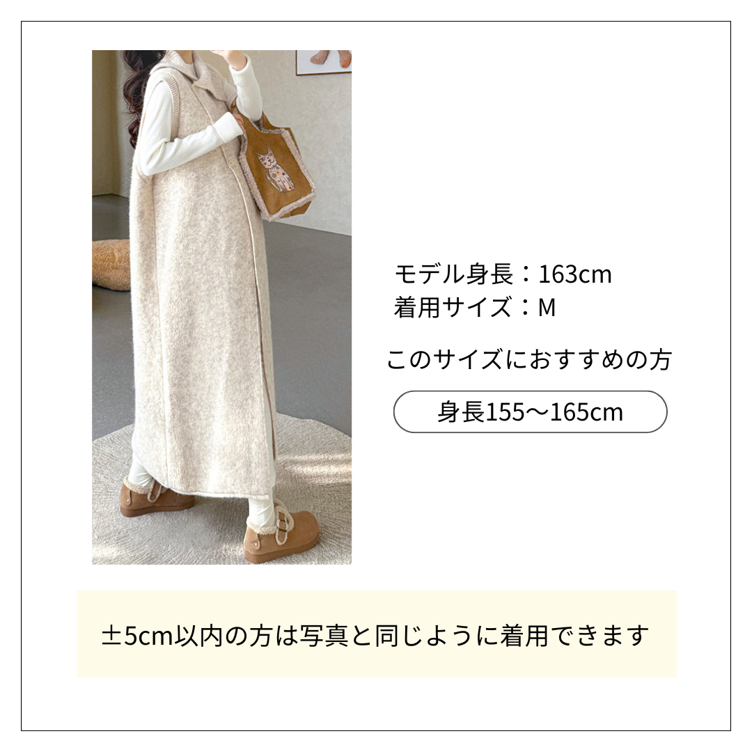 もこもこ素材のロング丈ベストと、リブニットワンピースの重ね着風セットアップ。 オールインワンコーデのスカートタイプで、一枚でこなれた着こなしが完成します。 柔らかな質感と優しいシルエットで、リラックス感のある大人可愛いスタイルを演出。